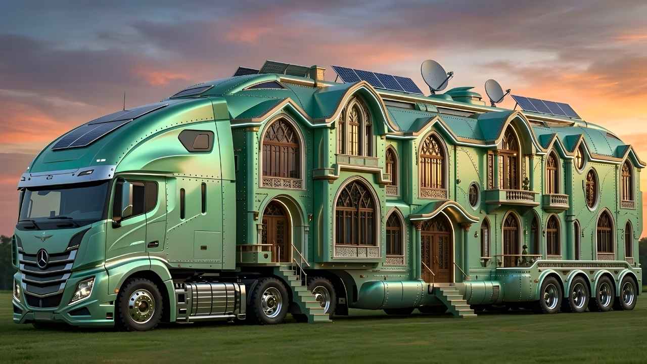 The Armadillo’s exterior is bold, eye-catching, and undeniably futuristic. Its angular lines and armored-inspired panels give it a rugged, expedition-ready appearance. LED accents, panoramic windows, and high ground clearance ensure that it stands out both on highways and rough terrains. Every detail screams adventure and luxury combined, making this motorhome a statement piece wherever it travels. Its design not only looks incredible but also enhances functionality for long-distance and off-grid journeys.